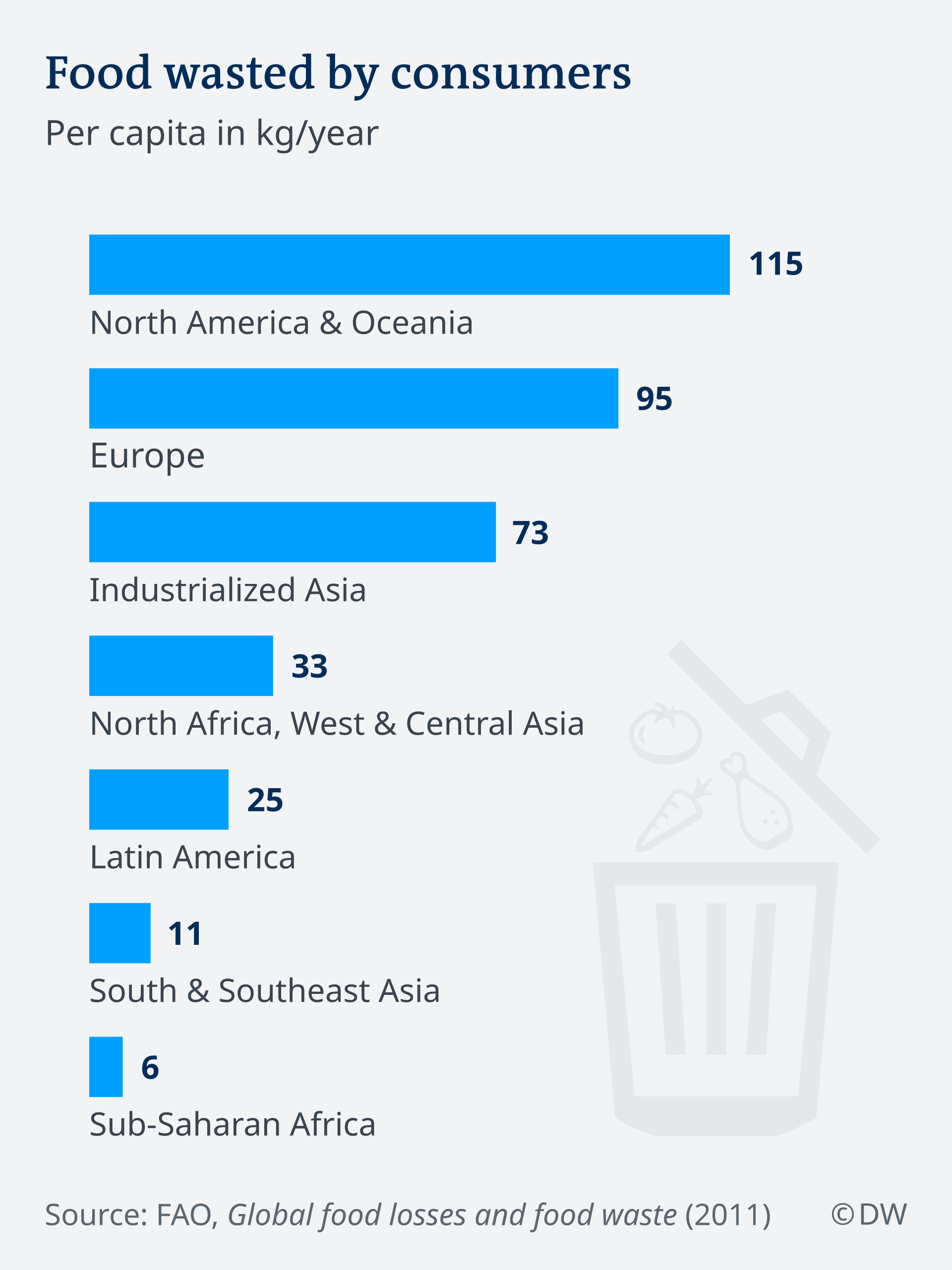 Food is wasted at all parts of the supply chain: at the agricultural level, while it is being handled and stored, while it is being processed, when it arrives at a grocery store and after it is purchased by catering businesses restaurants and consumers.